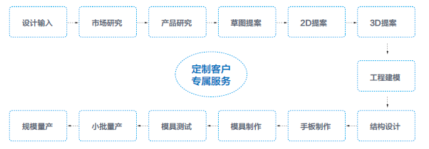 溝通了解客戶需求—3D打印原型—測試驗(yàn)證產(chǎn)品—提供樣品確認(rèn)及測試報告—產(chǎn)品批量供貨—售后服務(wù)